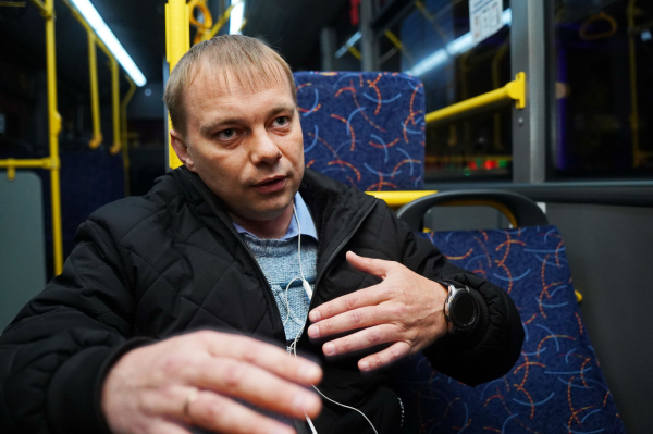 На разговор в пустом пока салоне у нас около получаса — в дороге общаться нельзя, на конечной у водителя есть всего 5-10 минут, чтобы размяться. Закончит свою смену водитель в шесть утра. Снова медосмотр. Автобус забирает перегонщик и ведёт его на заправку. А водитель по улицам, которые снова оживляются ранними пташками, доберется до дома на своём авто. Супруга (она сейчас в декрете) уже приготовила вкусный завтрак. Доставит сыновей в школу. Чай вдвоем. Можно и отдыхать.
