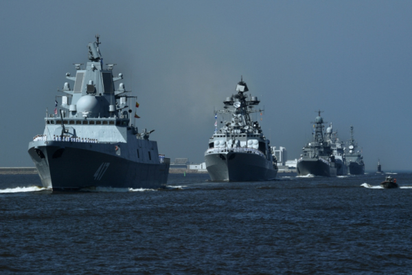 Фрегат проекта 22350 «Адмирал флота Советского Союза Горшков» (слева) на главном военно-морском параде в Кронштадте Рябков предостерег Европу от экспериментов с блокировкой российского флота