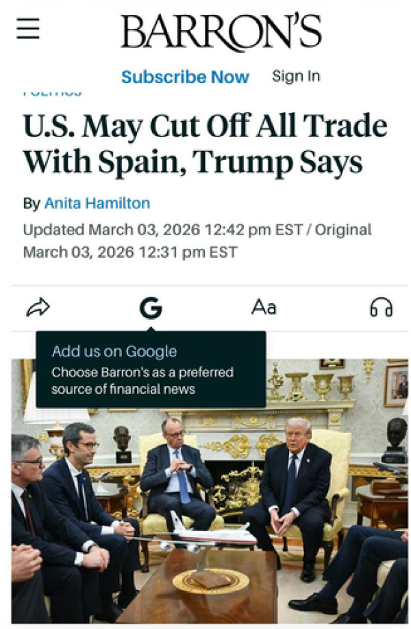 Товарооборот США и Испании достигает 70 миллиардов долларов ежегодно. Из Испании поступает много фармацевтики, промышленного оборудования и оливкового масла на американский рынок. В любом случае прекратить торговлю с отдельной страной Евросоюза Белый дом не в состоянии.