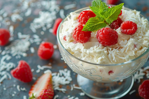 Для основы возьмите 300 г творога 5% жирности, 2 ст. л. мёда, 1 банан и горсть ягод (клубника или малина подойдут идеально). Разомните банан вилкой до пюре, добавьте творог и мёд, тщательно перемешайте блендером до гладкости. Разложите по креманкам, сверху украсьте ягодами и посыпьте щепоткой кокосовой стружки. Поставьте в холодильник на 5 минут — и готово! Такой десерт из творога содержит всего 200 ккал на порцию, богат белком и витаминами. Можно варьировать: добавьте орехи для хруста или ванильный экстракт для аромата.