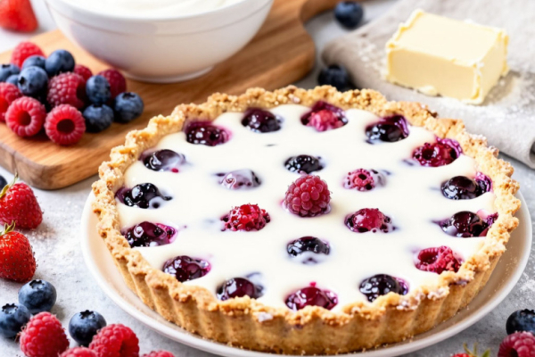 Для приготовления вам понадобится: для теста — 200 г муки, 100 г сливочного масла, 1 яйцо, 50 г сахара; для творожного слоя — 400 г творога, 2 яйца, 100 г сметаны, 80 г сахара, 1 пакетик ванильного сахара; для ягодного слоя — 300 г свежих или замороженных ягод (смородина, малина, клубника), 2 столовые ложки сахара, 1 столовая ложка крахмала.